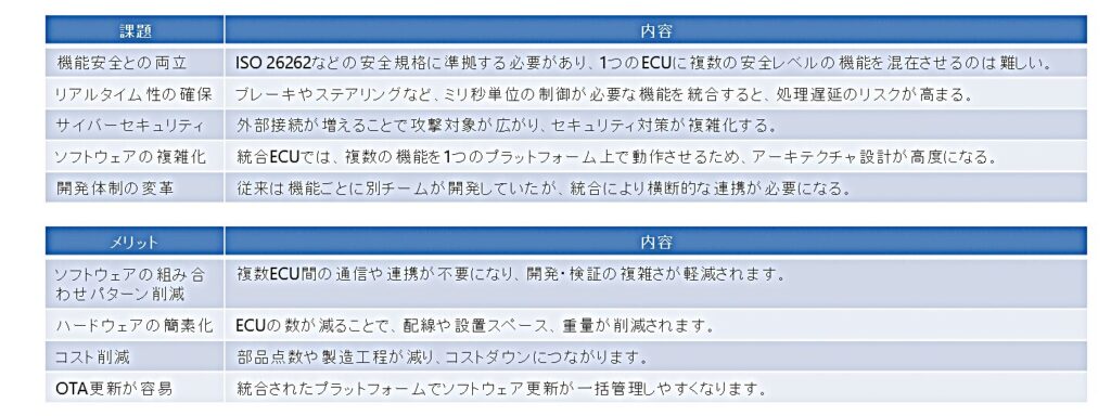 現状の車は各機能ごとにECUが分けられていますが、1つのECUに集約することでソフト開発における組み合わせパターンも大幅に削減できると思うのですが、ECUの集約は技術的に難しいのでしょうか。